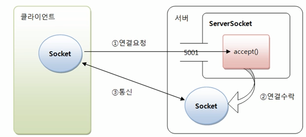 - 먼저 기다리는 측을 Server라고 하며, Server에서는 Port를 열고 Client의 접속을 기다립니다.
