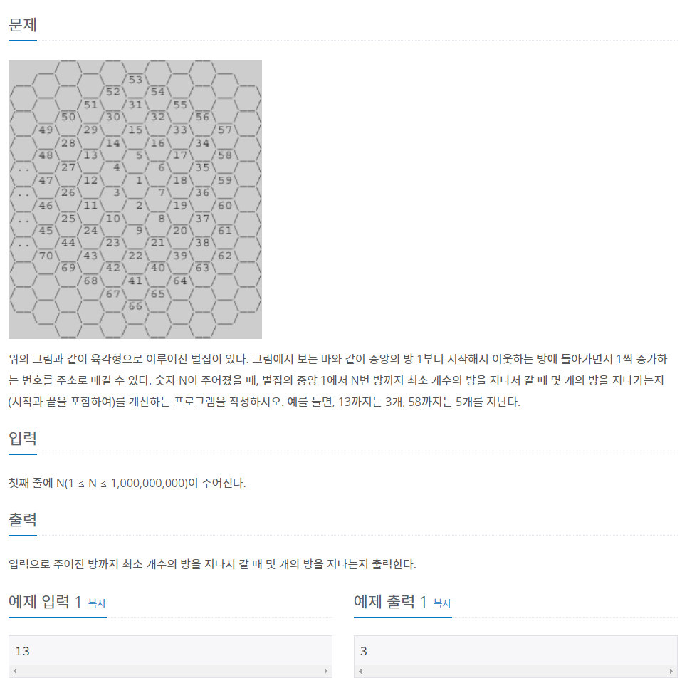 우리가 찾는 것은 몇개의 방, 즉 몇번째 줄이냐이므로 i+1을 출력해야한다.