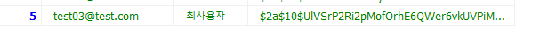 아래를 보면 회원가입에 성공하여 DB에 데이터가 잘 들어온 것을 확인 할 수 있다.